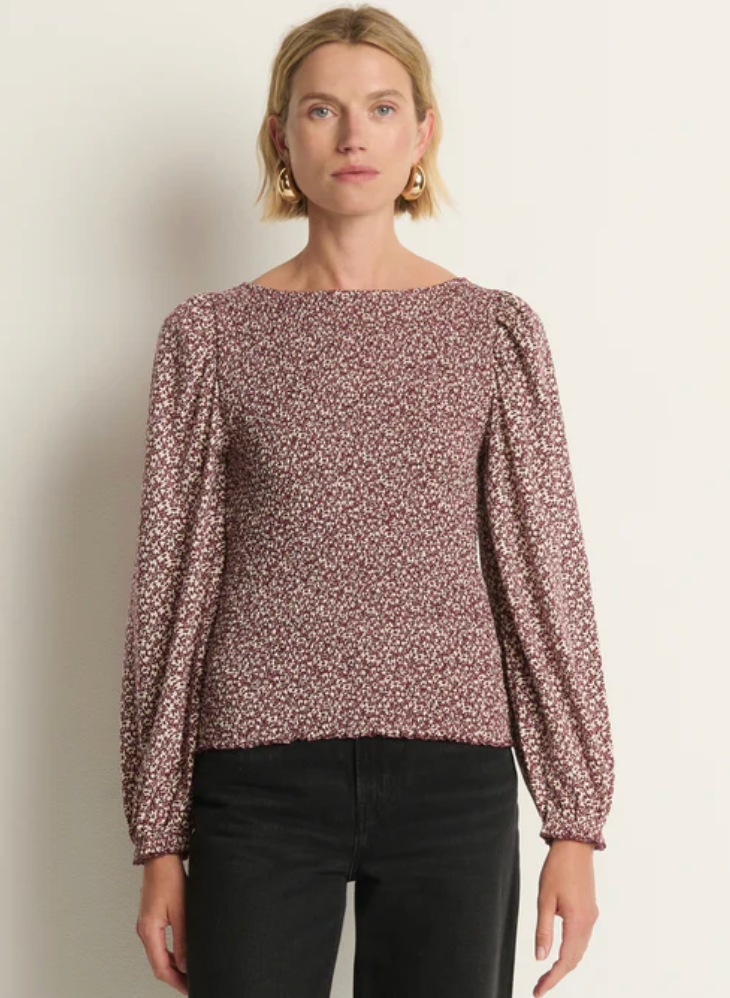 You'll keep this one in rotation no matter the season. The Aidan Smocked Top combines a refined silhouette with luxe comfort-crafted from soft jersey in a fitted, gathered design. A V-neck and long sleeves finish this feminine staple, our take on uncomplicated beauty.