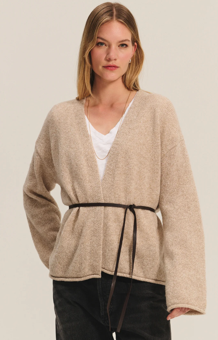 Offering effortless versatility, this cardigan is crafted from a soft wool blend with an open-front design and relaxed silhouette. Rolled cuffs, a drop shoulder, and side belt loops for adding your own detachable belt make it a chic, adaptable layer for any occasion.