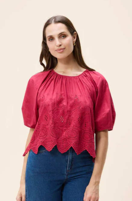 Effortlessly chic, the Cerese Top brings a touch of whimsy to your everyday wardrobe. Crafted from crisp cotton poplin, this short-sleeve beauty features a charming scallop hem and delicate eyelet detailing that catches the light just right. Perfect for pairing with your favorite jeans or a flowing skirt, it's the kind of piece that makes getting dressed feel like fun.