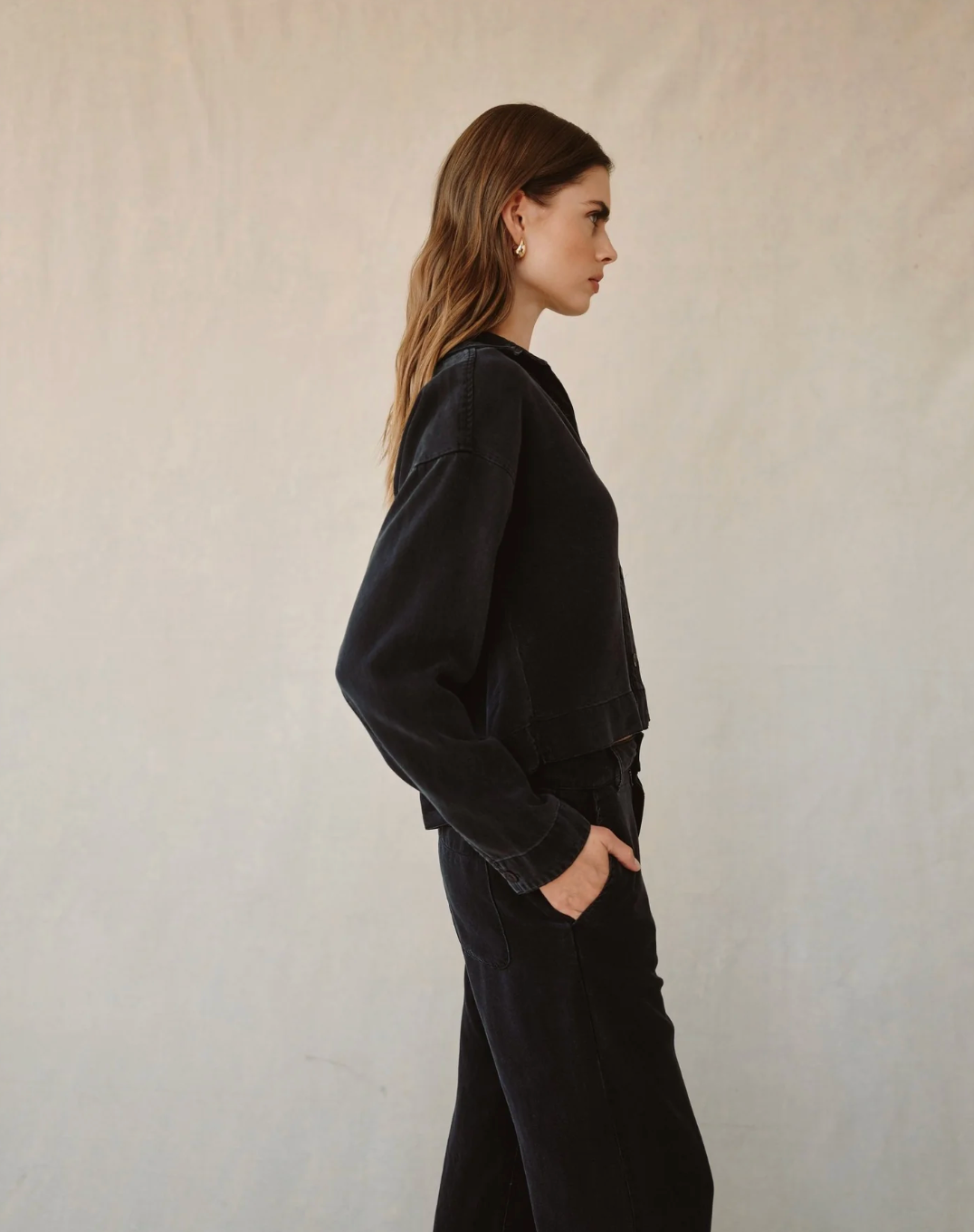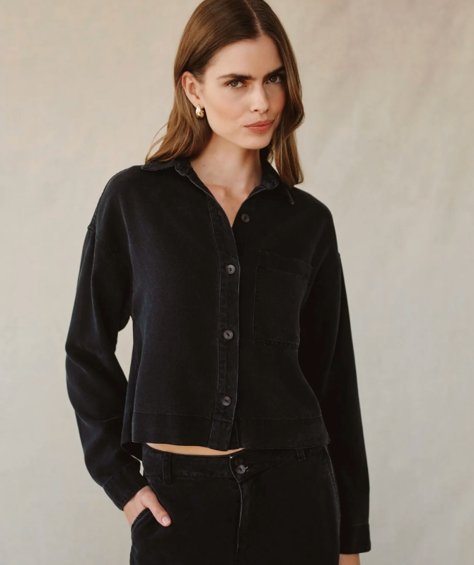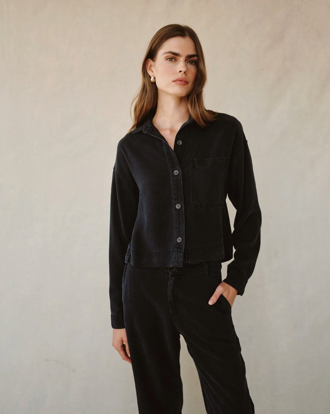 Relaxed and refined, the Crop Pocket Button Down in Dark Graphite Wash is a versatile layer designed for effortless, everyday wear.