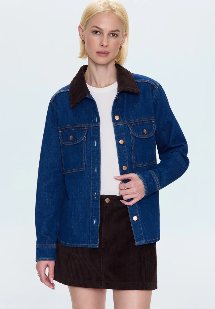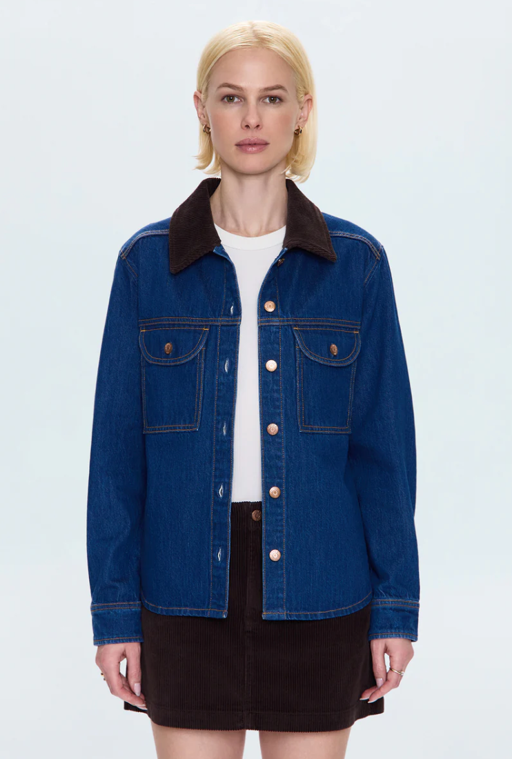 The layering piece you didn't know you needed. Devon delivers the perfect balance of shirt and jacket with a relaxed fit that feels effortlessly cool and never oversized. The classic button-up styling with chest pockets brings utilitarian appeal while the comfortable proportions make it perfect for layering or wearing solo. Crafted from premium denim in Infinity, a rich blue wash.