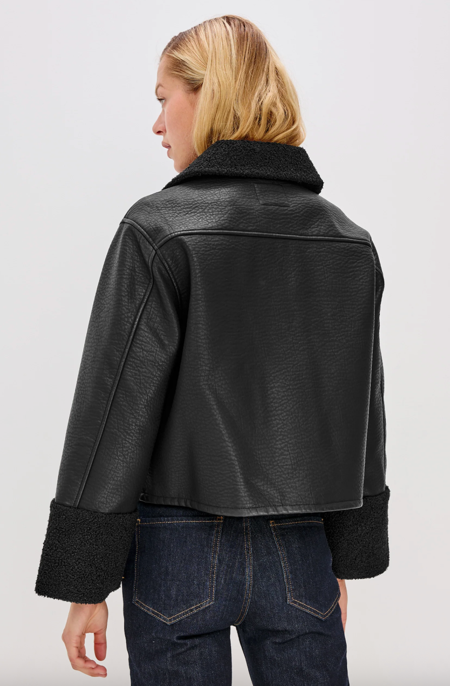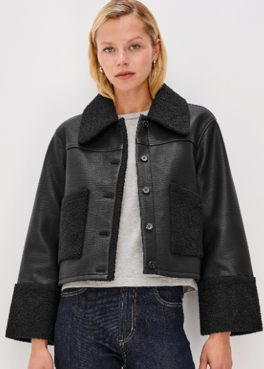 nspired by the 60s, the Dria Jacket offers a cropped, boxy fit for comfort and style. Luxe faux shearling details the cuffs, collar, and patch pockets, while faux-horn logo buttons add a final touch.