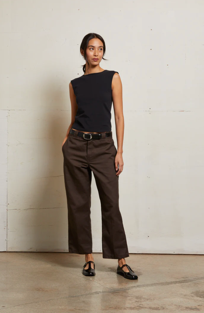 The eleanor top is a nod to the '90s, with a twist of modern edge. part of our 90s jersey collection, this muscle tee is sleeveless yet perfectly balanced. dainty, but with a touch of masculinity. it's not cropped but fitted, sitting right at the natural waist for the ultimate in effortless style.