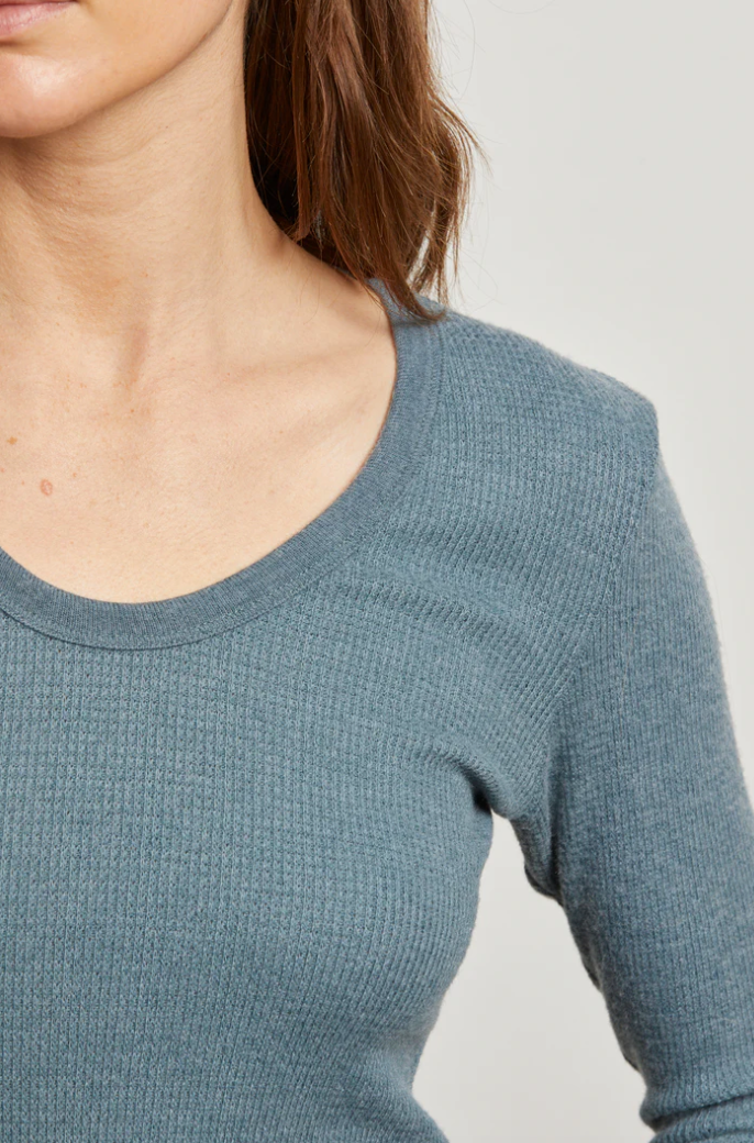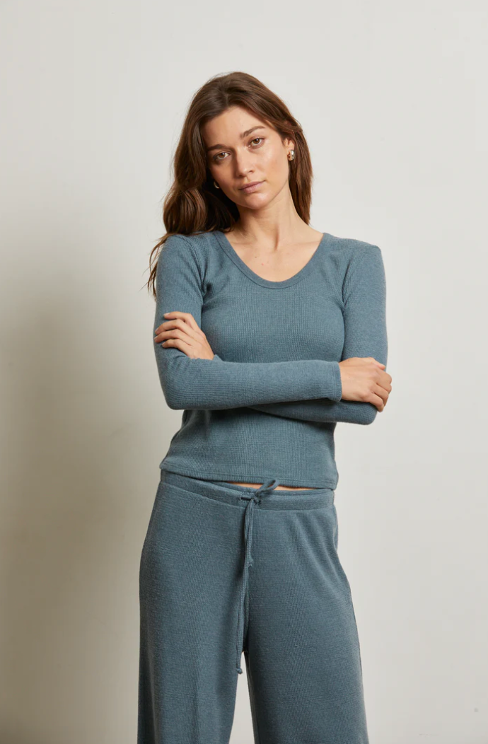 Part of our brushed waffle collection, the esme top is the definition of versatile. with a full-length fit and ultra-flattering u-shaped neckline, she pairs just as easily with the maddie bottom as she does with your favorite denim. simple, clean, and ready for whatever the day brings.