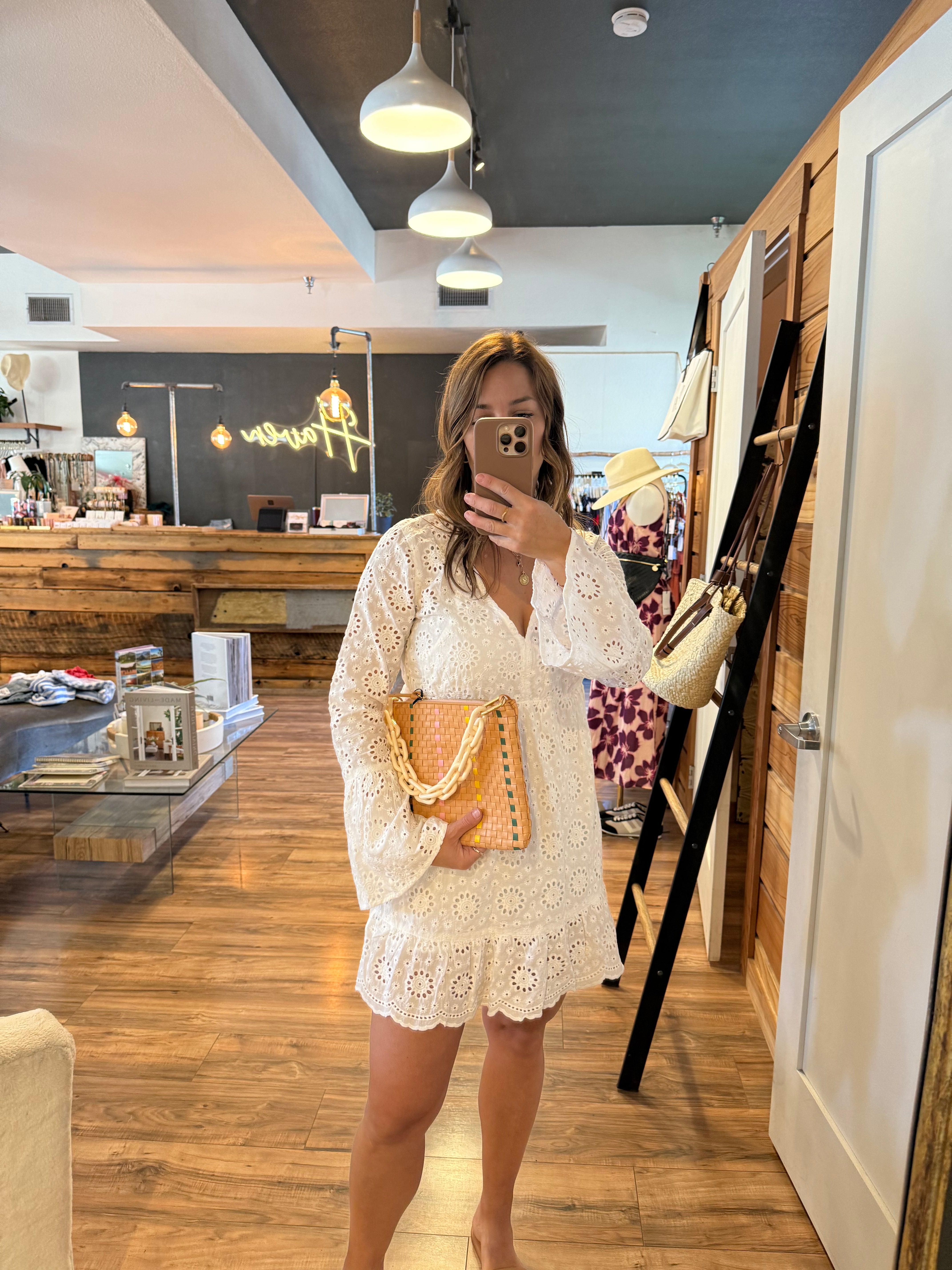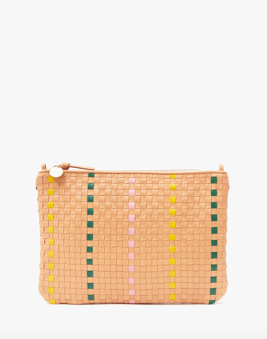 Clare V. Flat Clutch with Tabs - Bisque Woven Checker