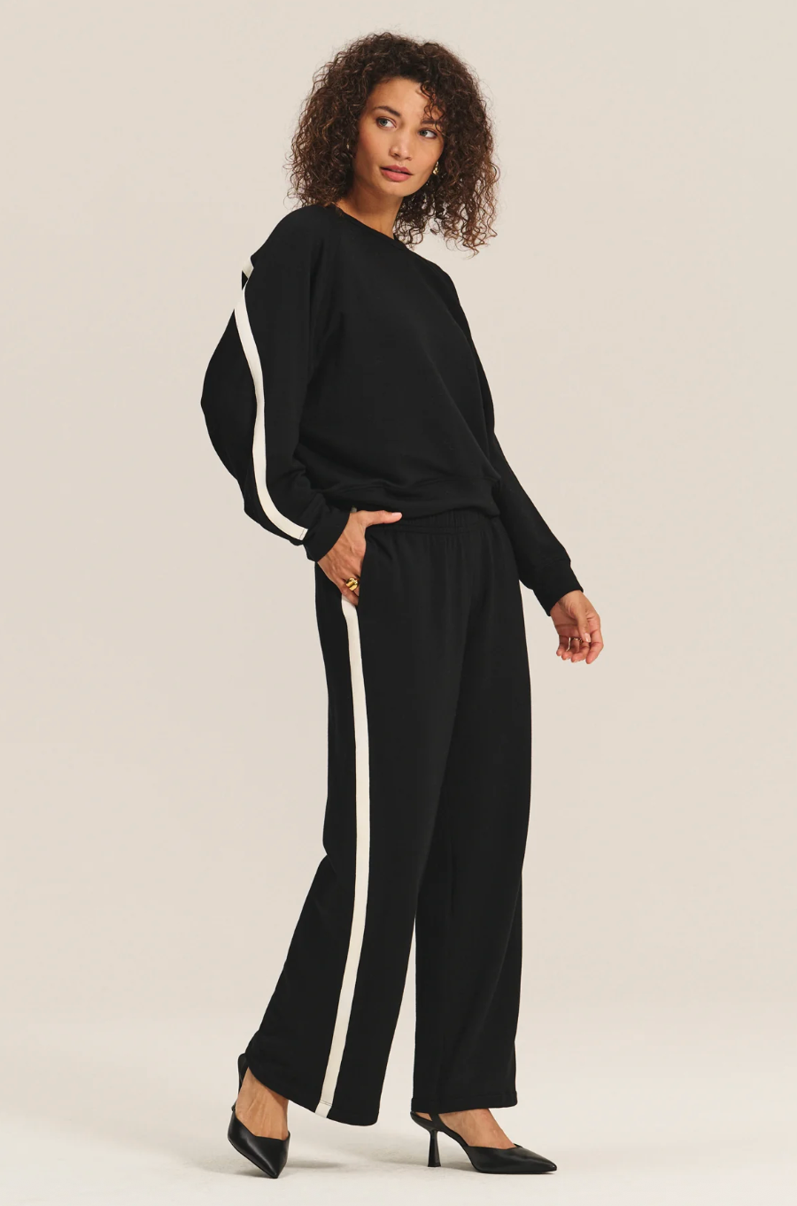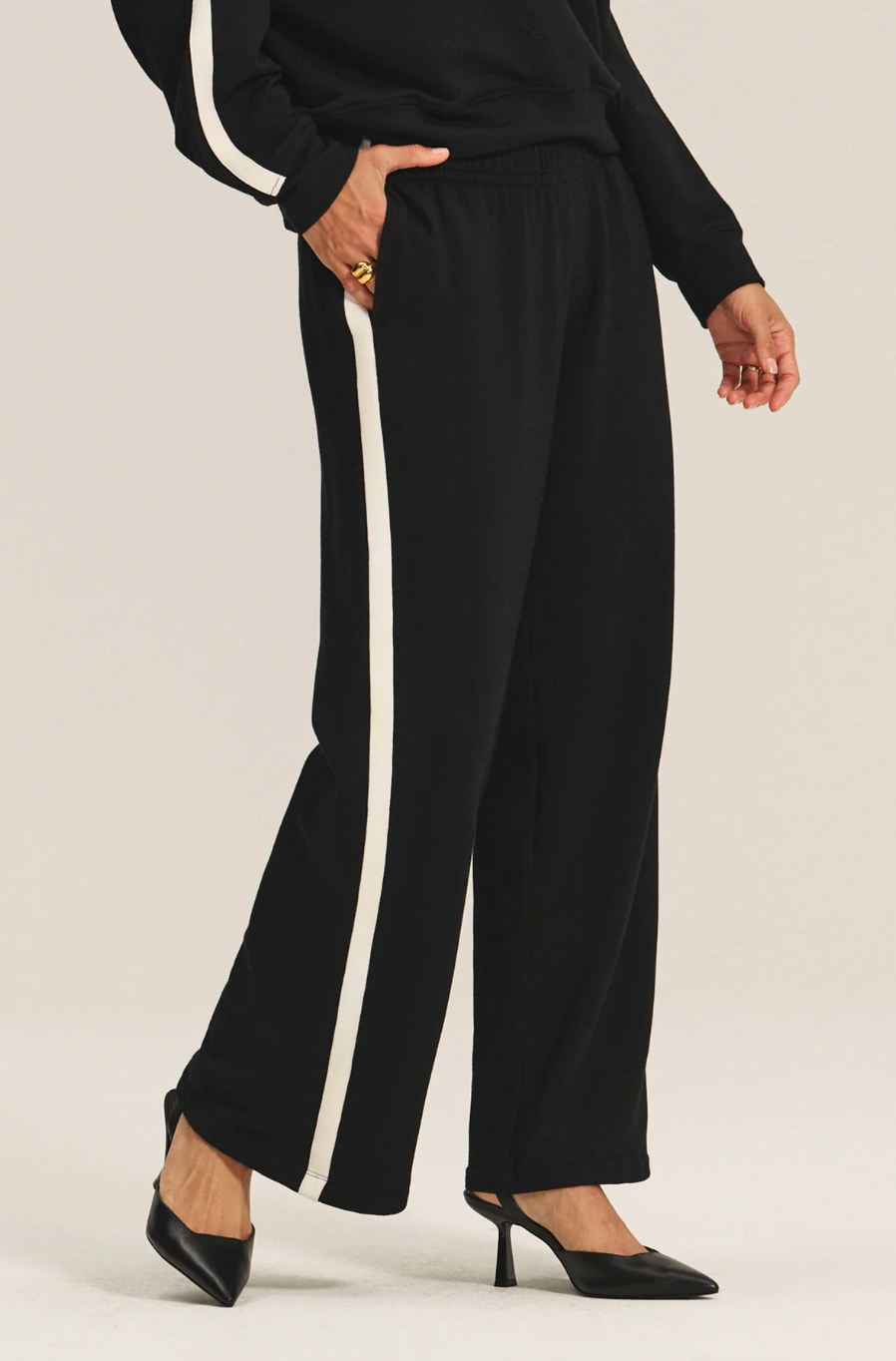 Crafted from midweight lush fleece, this sweatpant offers a relaxed wide-leg fit with an elastic pull-on waist for effortless comfort. Featuring contrasting color tape along the sides and two front pockets, it pairs perfectly with the Frankie Sweatshirt for a coordinated, modern look.