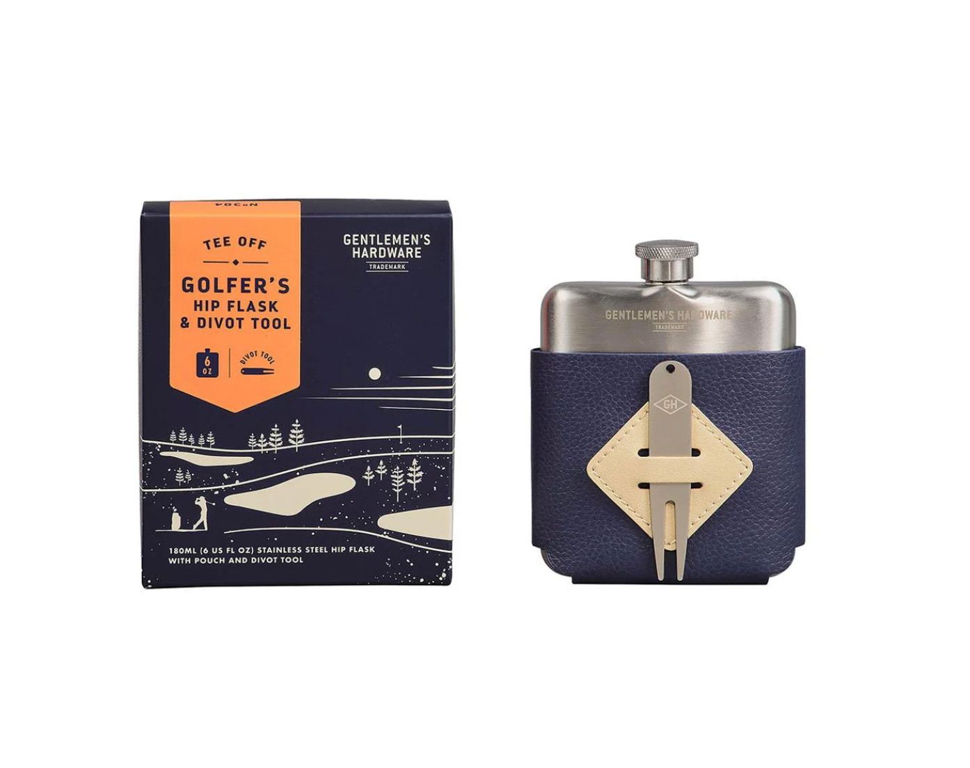 Have a well-deserved sip of your favorite tipple after a long day on the green with this Golfer's Hip Flask & Divot Tool Set. Perfect for having any spirit of your choice on hand during your gold game.