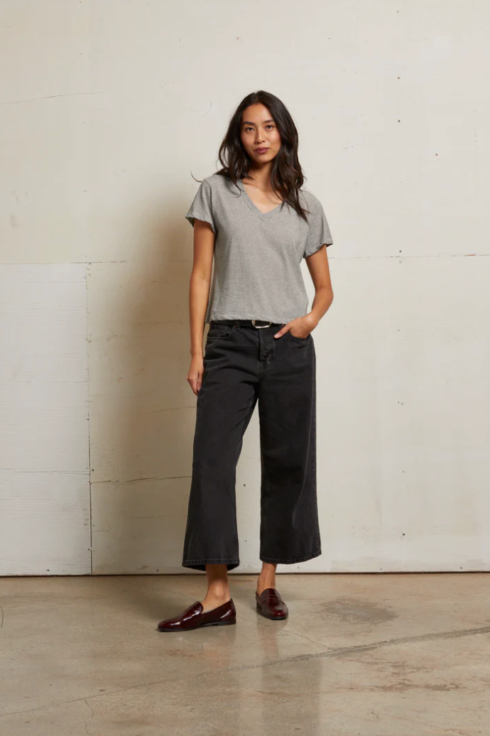 Lightweight. season-less. classic - the perfect, slightly-oversized v-neck tee. It's sexy, but not too sexy, the essential staple piece you will want to live in. Hits just below mid-rise denim, curated the perfect hues for any wardrobe. Get a few, they will be forever your favorite.
