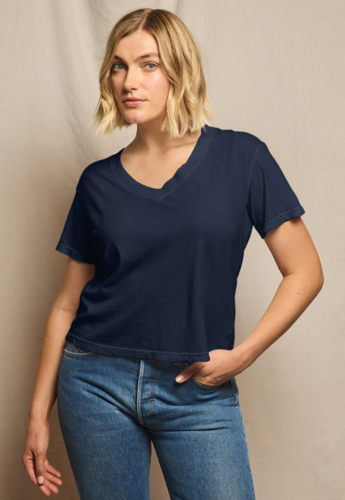 the perfect, slightly-oversized v-neck tee. it’s sexy, but not too sexy. the essential staple piece you will want to live in. hits just below mid-rise denim. we curated the perfect hues for any wardrobe. get a few, they will be forever your favorite.