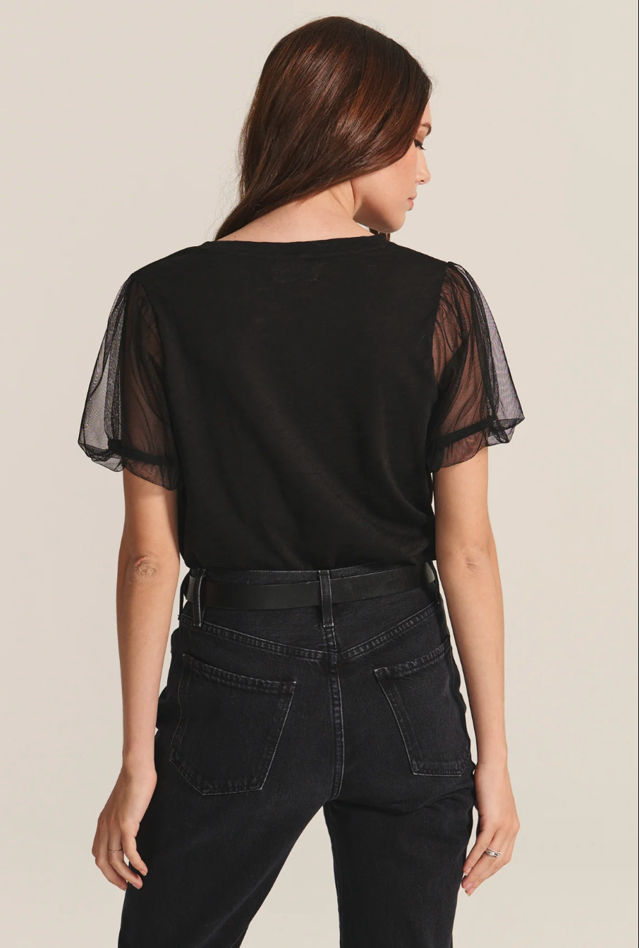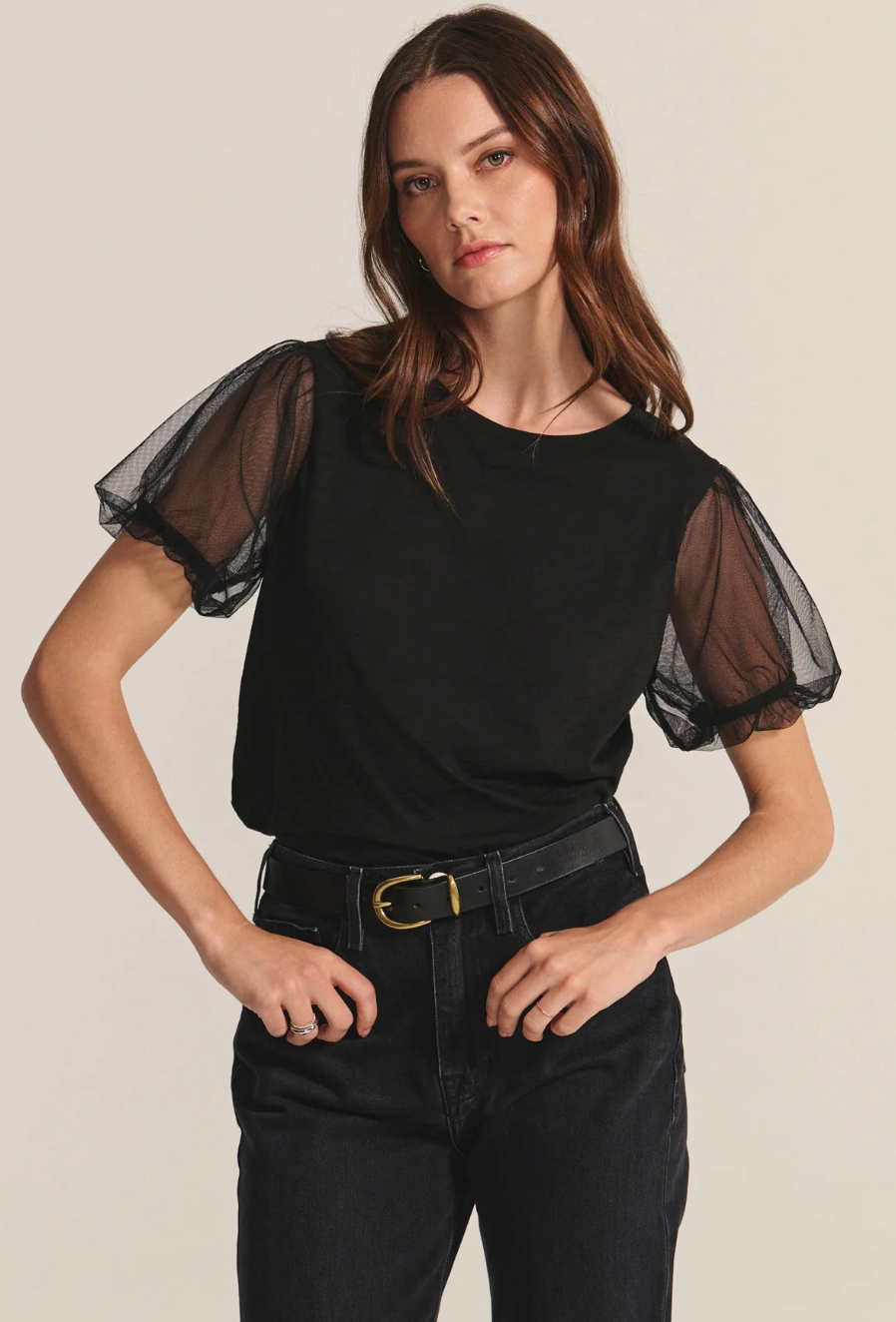 Crafted from soft cotton slub, this tee elevates a classic crew neckline with sophisticated tulle puff sleeves and elastic cuffs. This modern twist adds a sleek, stylish touch to your everyday basics, making it versatile enough to wear casually or dress up.
