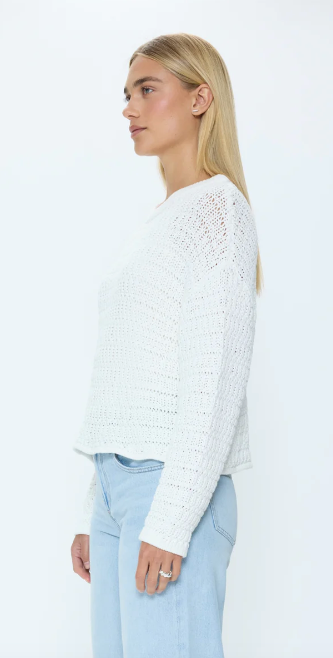 The Katya sweater elevates casual everyday knitwear with an open-weave construction and softly relaxed crewneck shape. Cut from 100% cotton in a classic white, it provides breathable comfort with an easy drape that make it a versatile, minimalist layer for transitional styling.