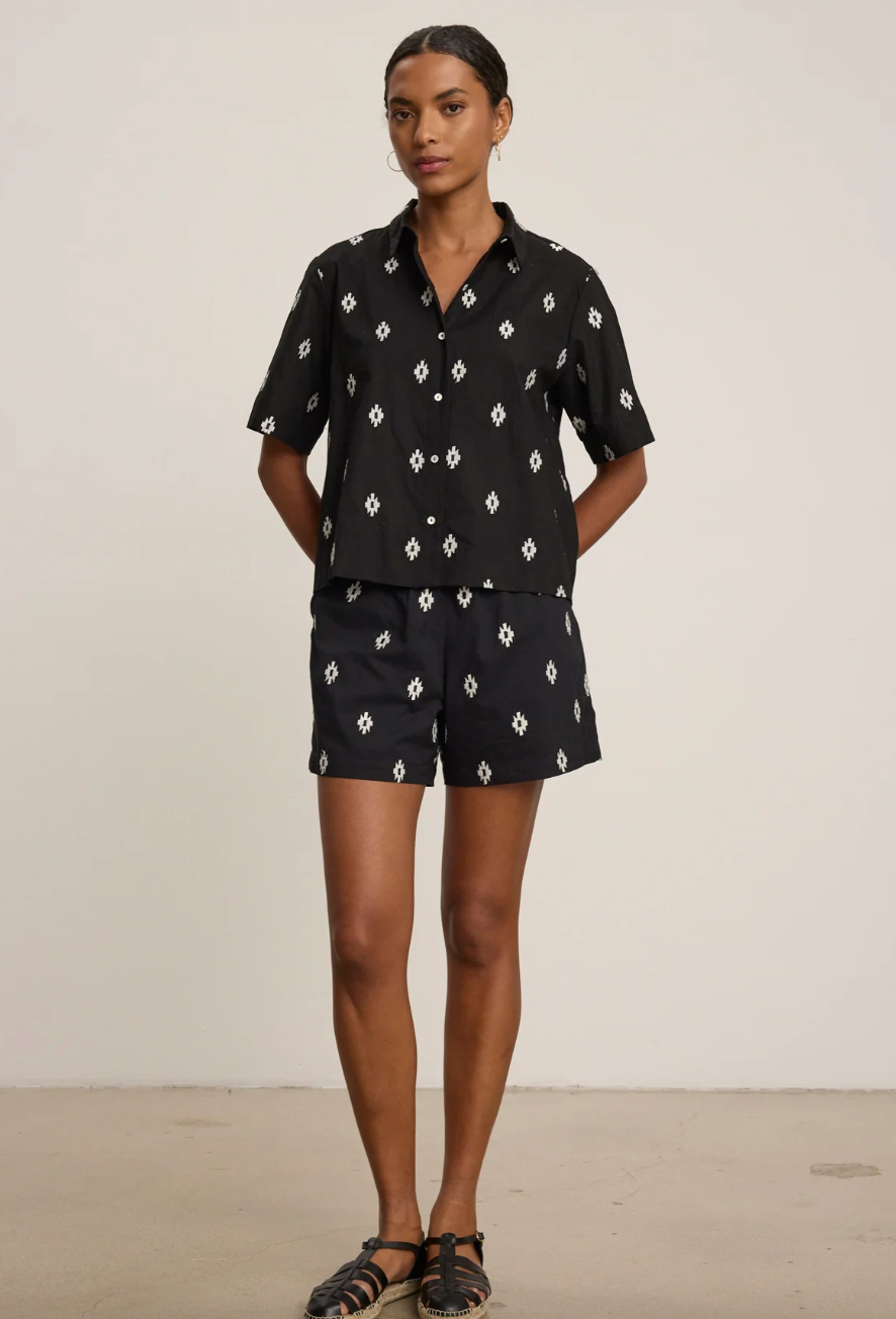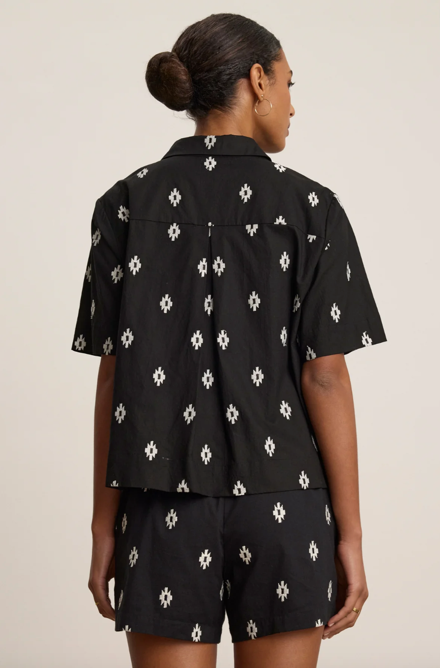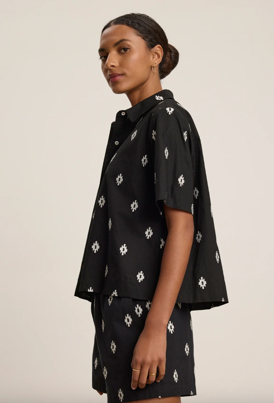 Featuring a full button front placket and classic collar, this top is crafted with breathable embroidered cotton voile and detailed with pleating at the back for subtle shape. Banded cuffs and hem provide a clean, structured finish. Lightweight and polished, it's a versatile piece perfect for day-to-night wear.