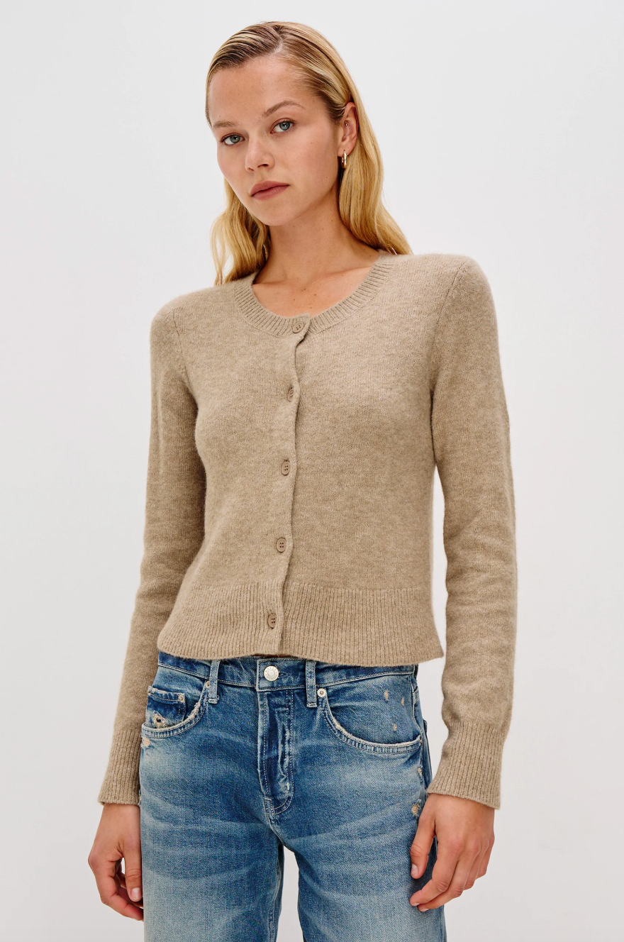 The Matilda is a cropped take on the cardigan, with a luxurious cashmere blend. It's cute enough to wear on its own or add dimension by layering.