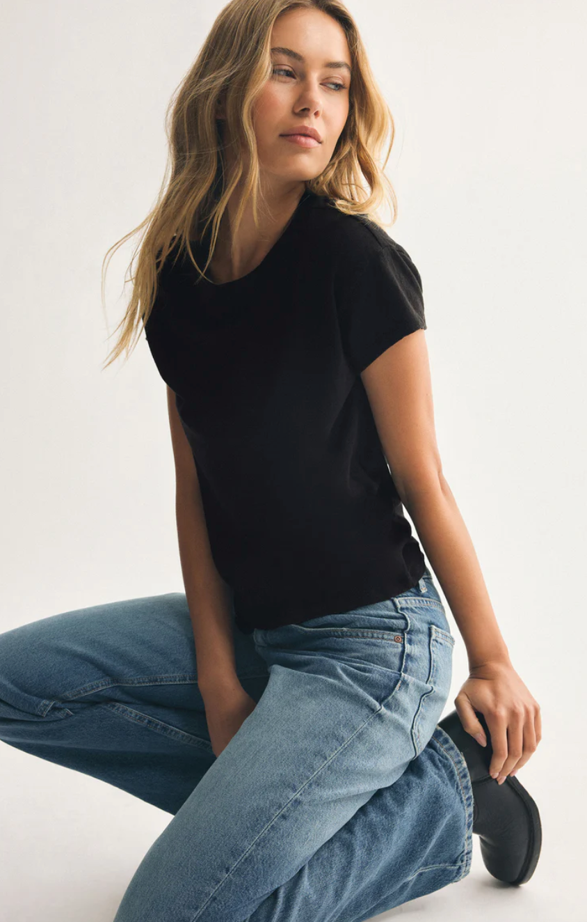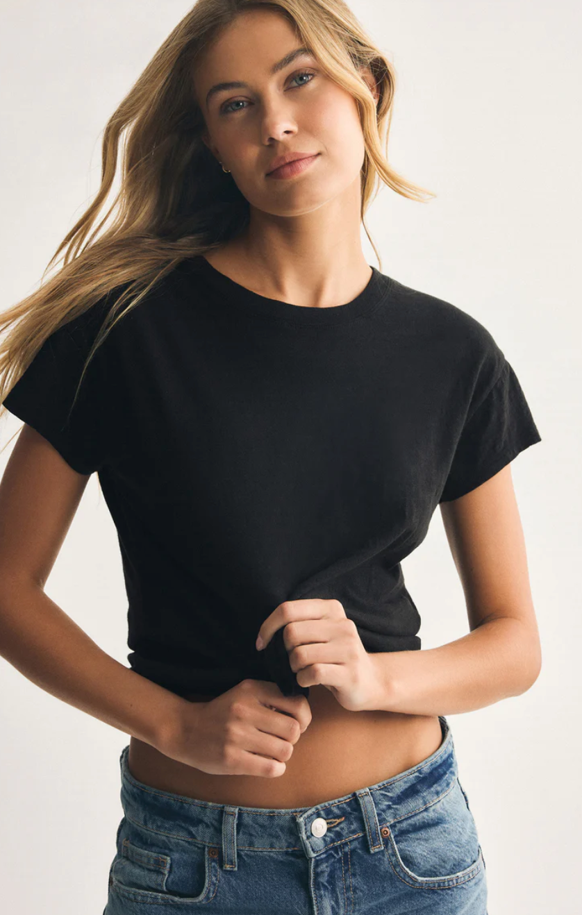 This classic tee is a must-have in every closet! This casual yet versatile top is great for wearing year-round and looks so good with your fave pair of jeans for an effortlessly cool look.