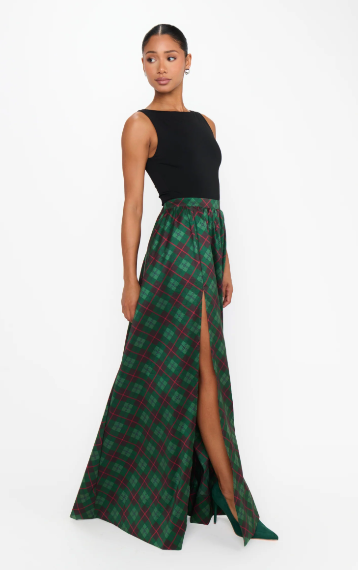 The Monroe Maxi Skirt brings the drama in all the right ways! With a flowy silhouette, a sultry side slit, and a comfy elastic waist, it's made for making an entrance and keeping the party going all night long. Style it with a sleek black top, heels, and a sparkly clutch for a flirty, festive look that shines.
