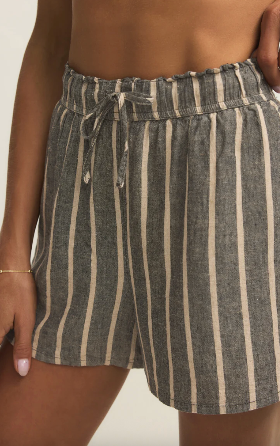 This soft textured linen short is an easy yet elevated choice. Made of a soft linen blend, these stripe shorts bring a stylish ease to any look. A daily essential, these comfy bottoms feature side pockets, an elastic waistband, and a lightweight feel. We like to pair it with a button up top for an effortless look.