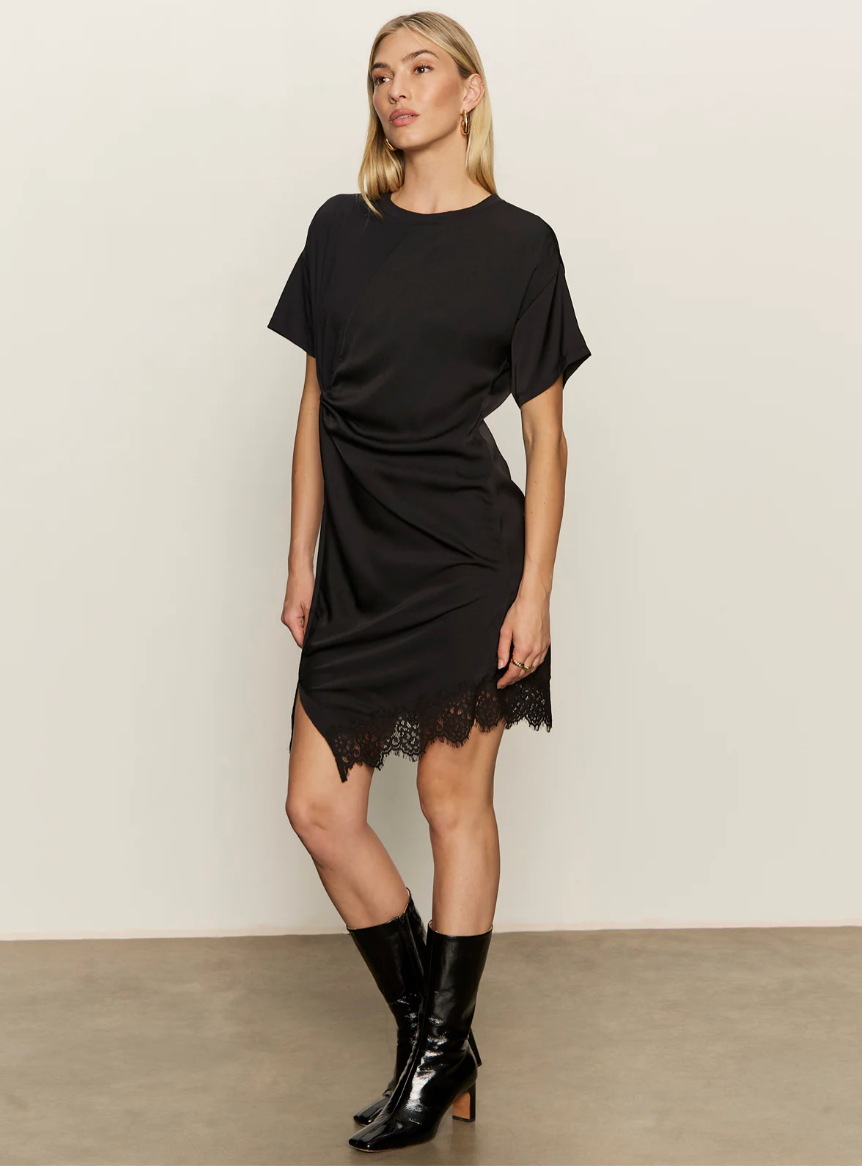 Satin Mix T-shirt Dress - Black