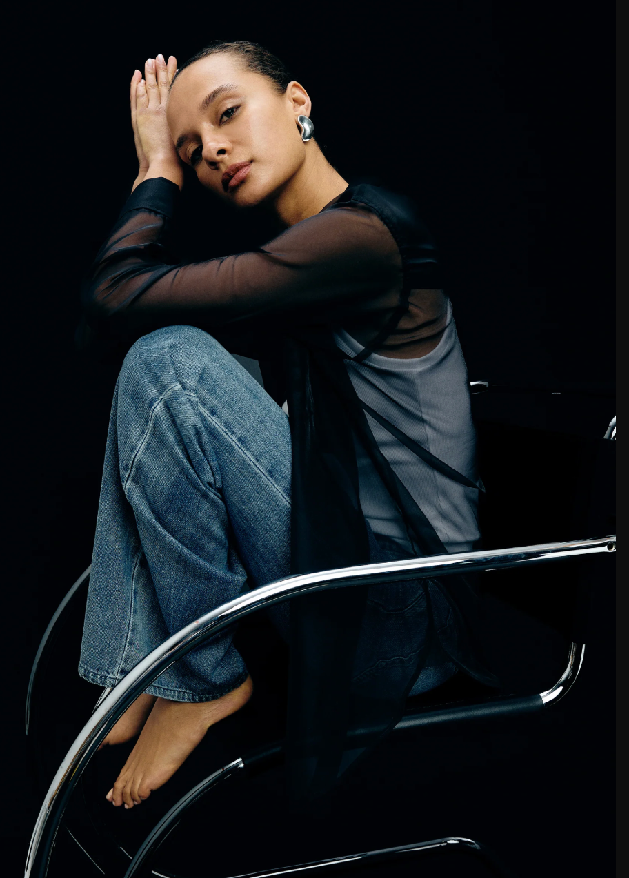 The classic shirt silhouette, reimagined in flowing, sheer organza. The Sofiya elevates this timeless design into an elegant essential, featuring a crisp collar, chest pocket, front button closures, and long sleeves.