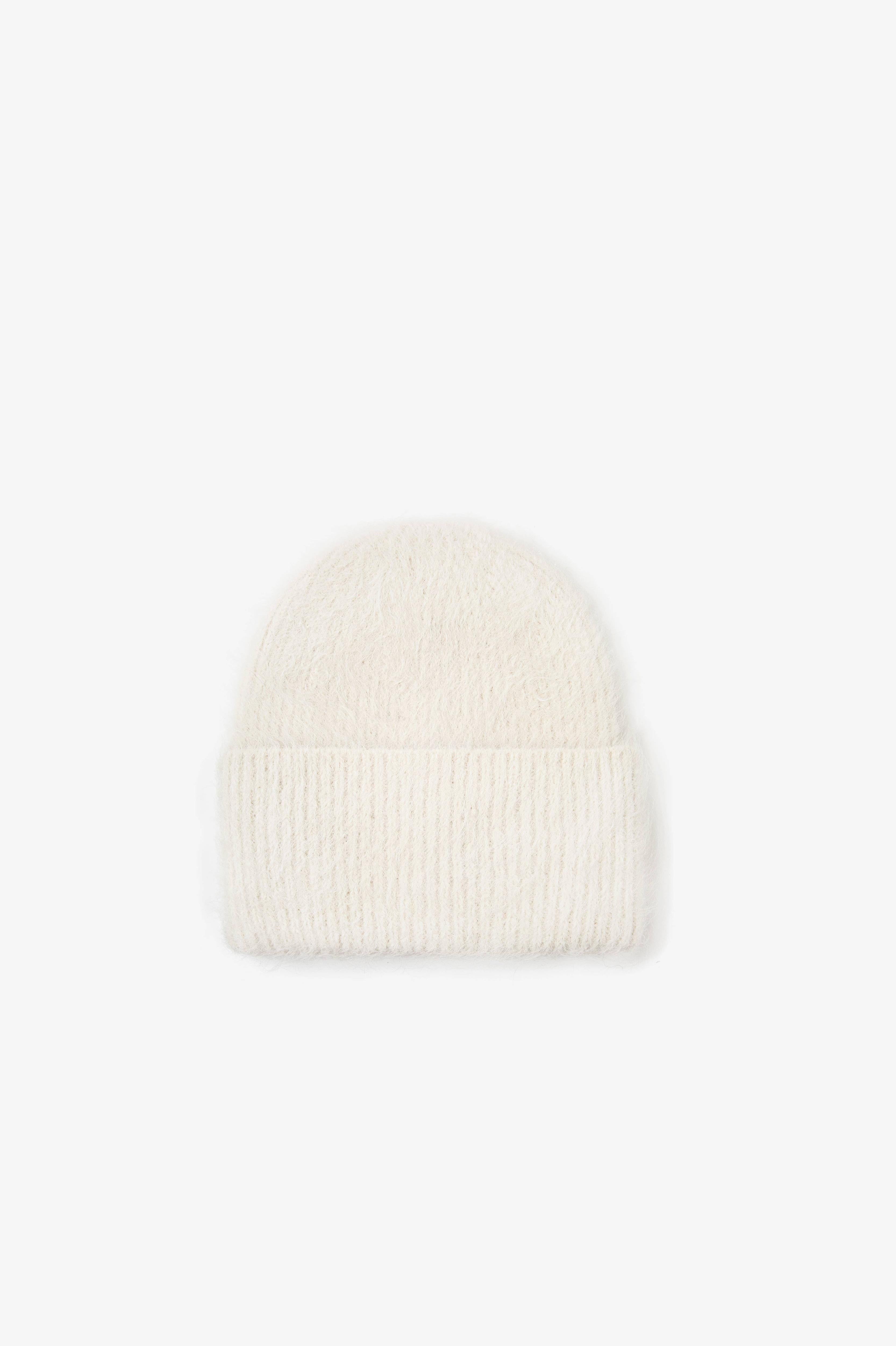 - Features an elongated shape with a stand-up crown, expertly folded at the hem to provide an extra layer of warmth. Seamless design to ensure a zero-waste production process.