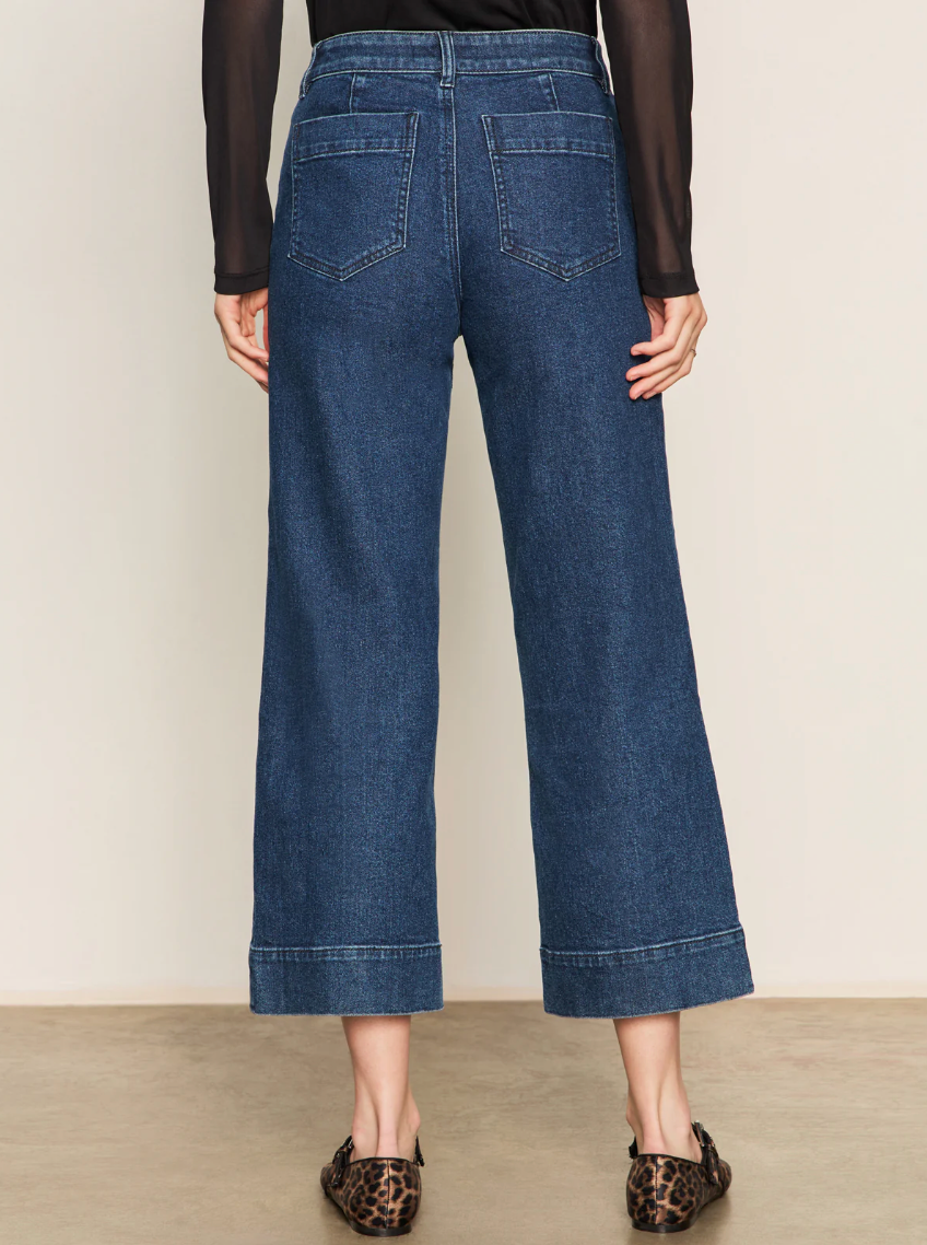 The Marine Jean - Aspen features a stylish cropped wide-leg design and unique front pocket detailing, combining modern aesthetics with everyday comfort. Perfect for effortlessly elevating your casual wardrobe.