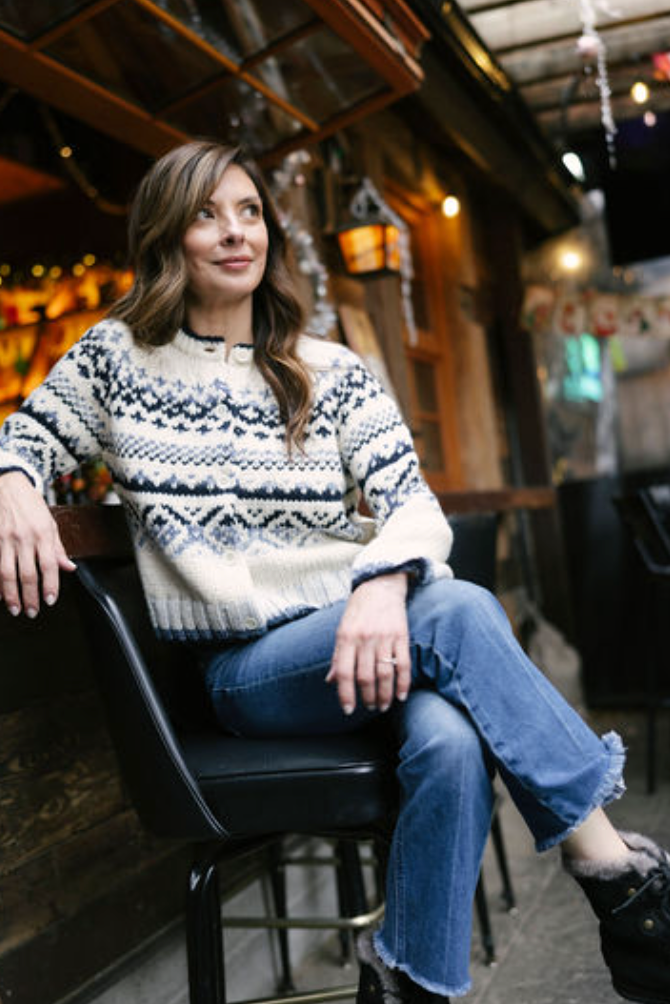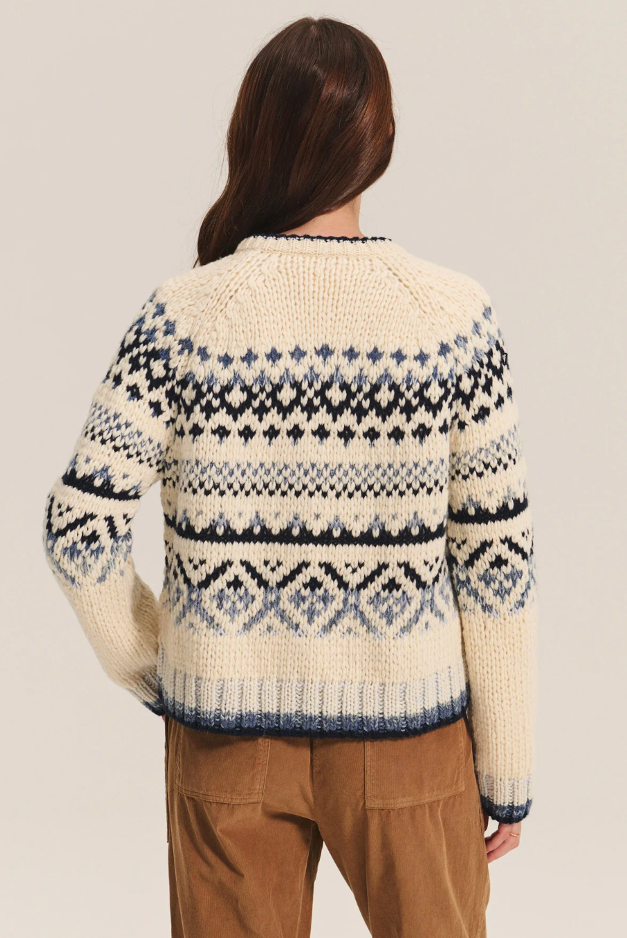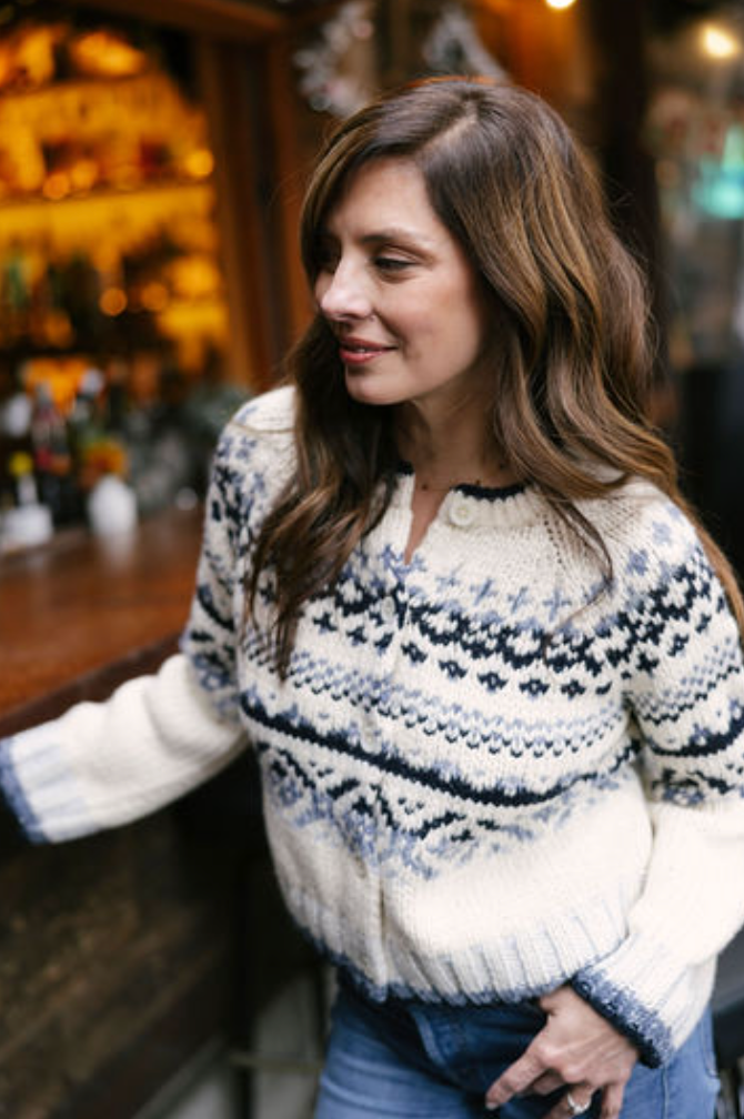 Knitted from a cozy alpaca blend, this cardigan features a chunky Fair Isle pattern and a five-button front that can be worn open or closed for versatile styling. Layer it over a basic tank or any stylish shirt for textured warmth-perfect for cold-weather days.